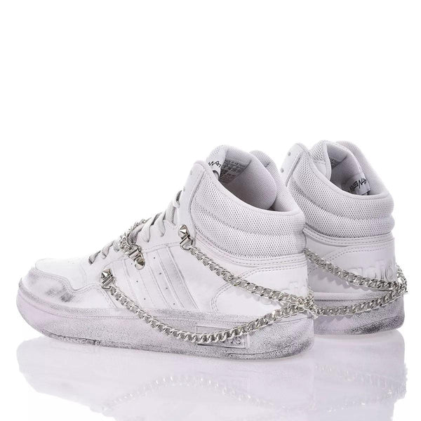 Adidas Hoops Chain, rock addicted all'ascolto: ecco le sneakers che non sapevate di desiderare. Tre file di catene argento fissate da borchie a punta e la sporcatura per un tocco vintage, un animo punk rock che si fa desiderare e si abbina ad ogni look.