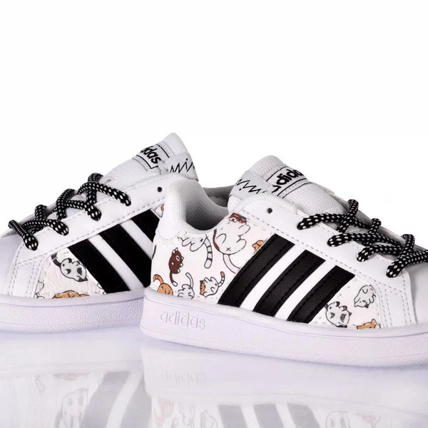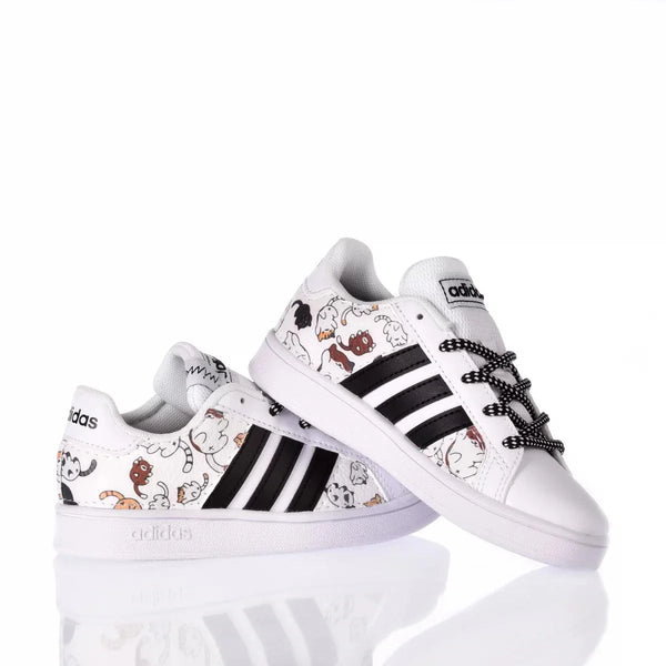 Adidas Junior Sabri & Pika Cats con patch disegnato da LaSabri e Pika, che viene inserito su entrambi i lati. Questa sneakers ti verrà fornita con lacci bianchi e neri, oltre ai suoi originali. Disponibili per adulti e junior.