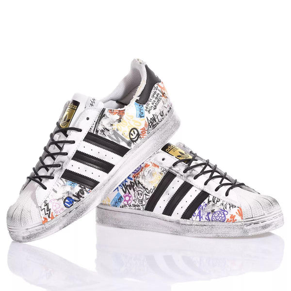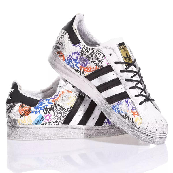 adidas Superstar Destroyed Graffiti è la sneaker custom da uomo e donna, il tessuto stampato cucito sui lati presenta le tipiche grafiche dei graffiti usati nell'ambito street, viene poi completamente distrutta e sporcata grazie ad una apposita lavorazione che la rende estremamente grintosa.