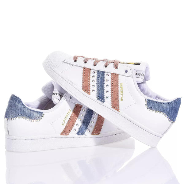 Adidas Superstar Ligis è la sneakers custom da donna delicata e versatile. Denim sul retro e tra le iconiche righe Adidas perfettamente mixato ad un ecopitone rosa caldo. Tocchi di luce rendono Adidas Superstar Ligis superfemminile grazie agli Swarovski tra le righe e sul retro. Completano il look di questa sneakers i lacci lurex argento e rosa.