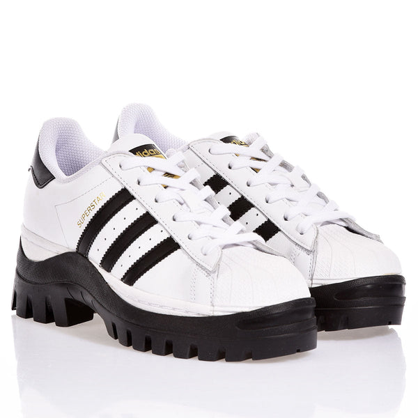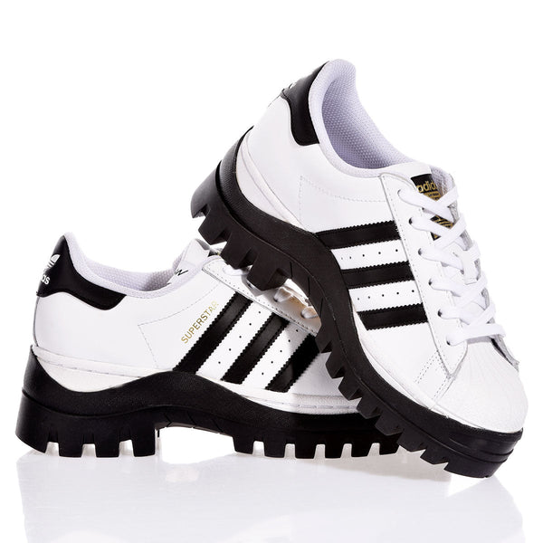 Adidas Superstar Vibram Black è l’incontro perfetto tra icona street e spirito outdoor.La silhouette bianca dello storico modello Superstar incontra la forza della suola Vibram nera dal carattere robusto e ispirazione boots, pensata per offrire aderenza, solidità e un look grintoso. Le iconiche righe e il dettaglio posteriore in nero richiamano invece, l’anima originale Adidas. Una sneaker pensata per chi vuole distinguersi, restando fedele allo stile.