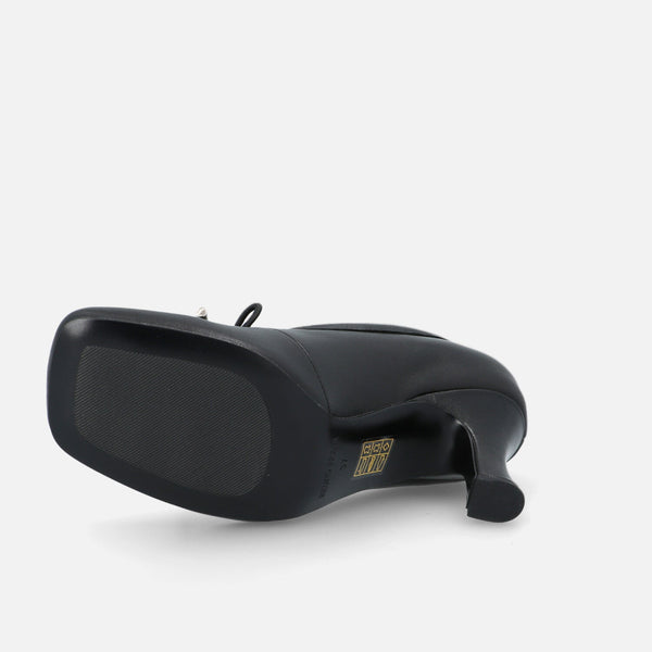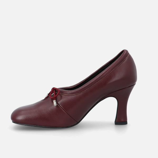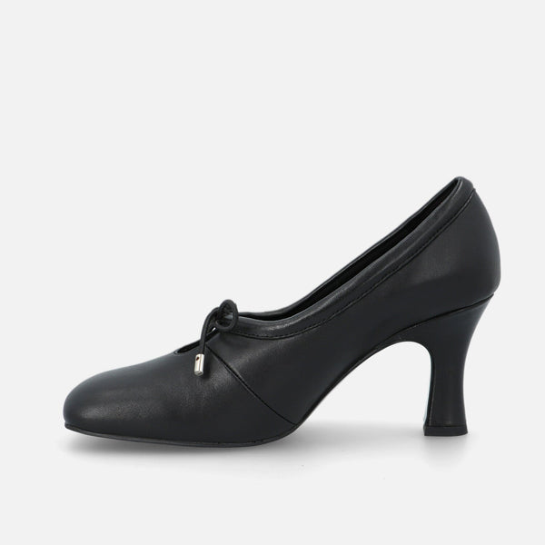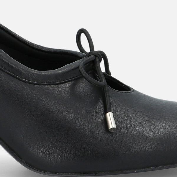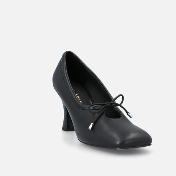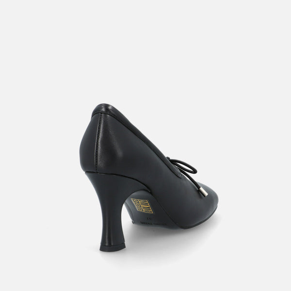 Le Bety On sono pumps in pelle nappa che si distinguono per il loro stile bon ton reinterpretato in chiave contemporanea. La punta squadrata dona struttura e modernità alla silhouette morbida, mentre il fiocchetto sottile con finalini metallici aggiunge un dettaglio romantico e femminile. Il design è completato da un tacco a rocchetto medio, che slancia la figura offrendo al contempo comfort e stabilità. Un modello elegante e versatile, perfetto per look da ufficio, eventi formali o per aggiungere un tocco sofisticato al quotidiano.