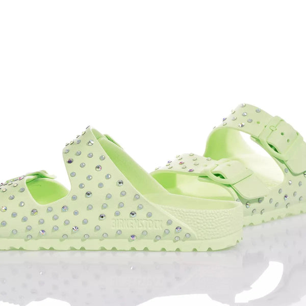 Birkenstock Arizona Lime Swarovski è il modello che rende la tua estate un mix di comfort & unicità. La base color lime è ricoperta da gemme di swarovski bicolore applicate a mano una ad una per un effetto luminoso, fresco e super versatile, sia per il giorno che per la sera.