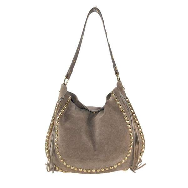 Borsa a spalla in pelle camoscio con borchie made italy ZETA SHOES