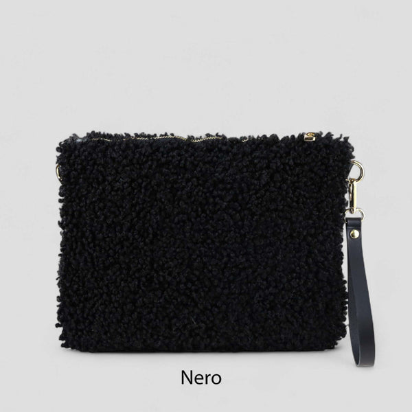 Borsa donna a tracolla in tessuto ZETA SHOES.Morbida e capiente, combina la texture soffice effetto peluche con dettagli in pelle che le conferiscono eleganza e resistenza. La forma moderna la rende perfetta per look casual ma curati. Disponibile in vari colori, aggiunge un tocco contemporaneo e originale ad ogni outfit.