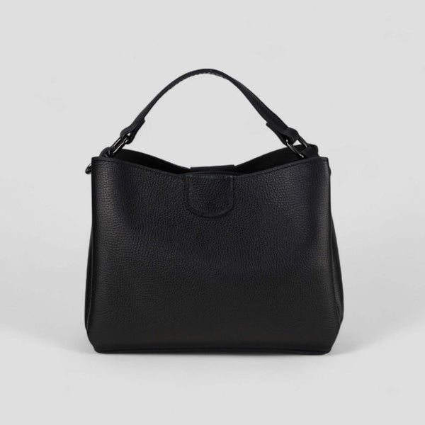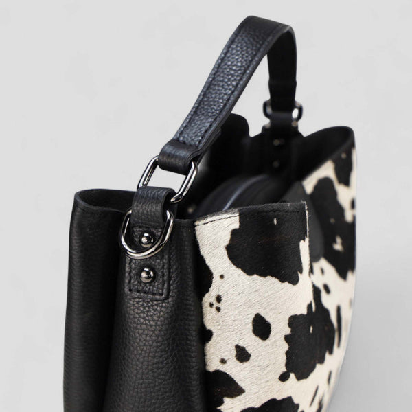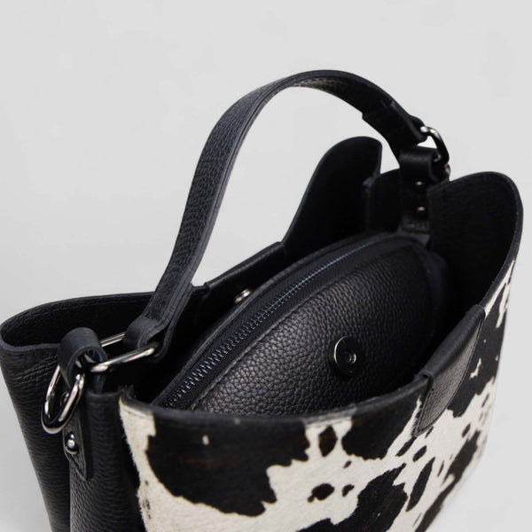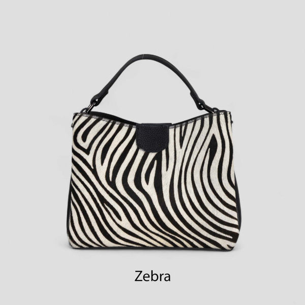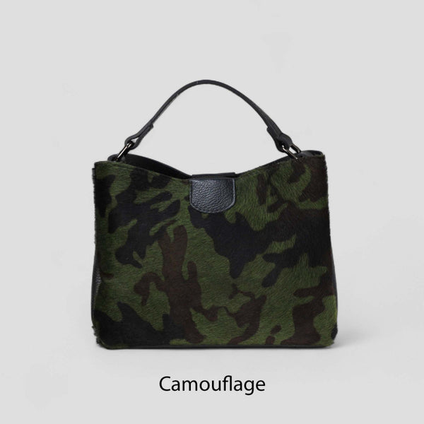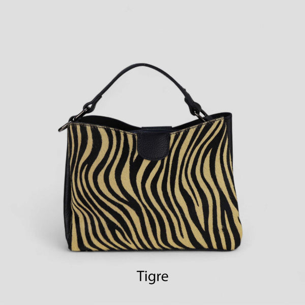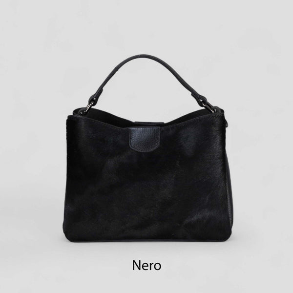 Borsa a mano in pelle e cavallino con tracolla regolabile, un accessorio sofisticato dal fascino esclusivo. La struttura compatta abbina la morbidezza della pelle liscia al dettaglio in cavallino effetto animalier, creando un contrasto elegante e contemporaneo. Dotata di manici per portarla a mano e tracolla regolabile per indossarla crossbody, garantisce versatilità e comfort. L'interno foderato offre spazio funzionale per custodire con ordine gli oggetti personali. Una borsa di carattere, perfetta per look distintivi e raffinati