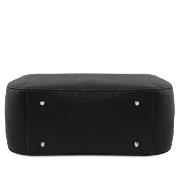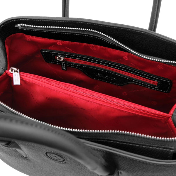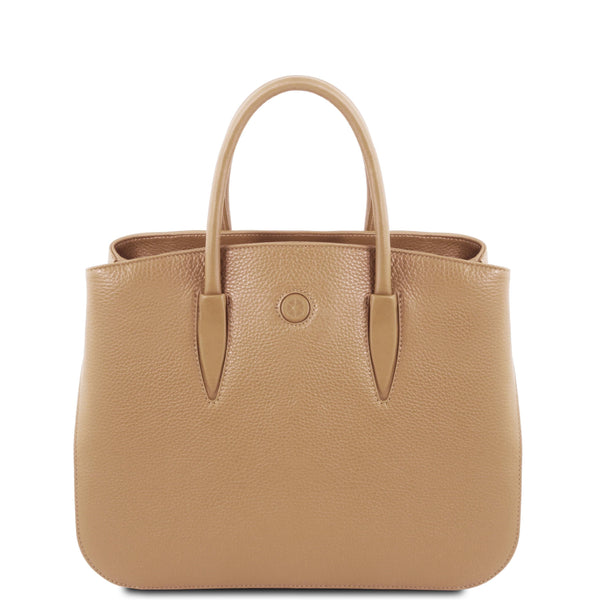 Experience the epitome of luxury with our exquisitely soft Camelia Leather Handbag. Meticulously handcrafted in Italy, this stylish tote combines elegance and functionality seamlessly. Featuring a timeless design, it includes 3 internal pockets (one zippered) and a central zipped pocket, ensuring effortless organization. The silver-tone hardware adds a sophisticated touch, while the detachable shoulder strap offers versatile, hands-free convenience. The secure zipper closure makes it an ideal companion for the bustling lifestyle of any modern woman. Available in classic shades of black and tan, with occasional seasonal colors, this Italian leather tote complements any wardrobe effortlessly.