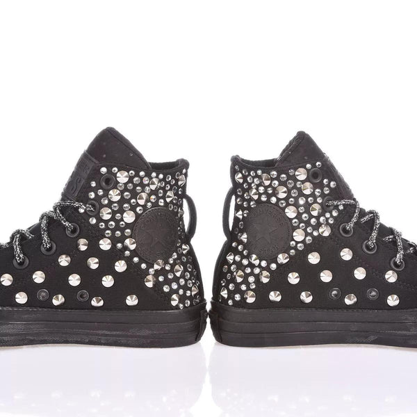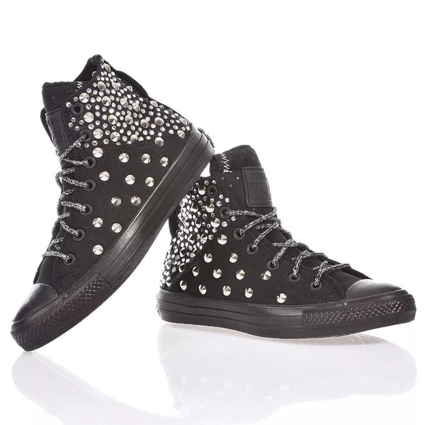Converse Brea Black è la sneaker custom da donna, ricoperta di borchie a stesura larga per dare spazio nella parte posteriore agli spettacolari swarovski crystal che la rendono scintillante e preziosa.