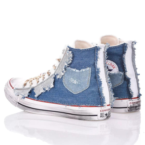 Converse Indigo Pocket è la sneaker custom uomo e donna, decisamente estroversa grazie al denim blu cucito sui lati con i particolari lungo gli occhielli e lungo il retro strappati, il tocco di genio e pazzia però lo da la tasca aggiunta ai lati sia interni che esterni.