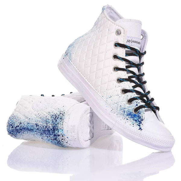 Converse White Quilt è la sneakers personalizzata per l’uomo dallo spirito wild e cool allo stesso tempo. Ispirata alla neve e alle montagne, questa sneakers è interamente rivestita ai lati da caldo matelassè bianco con schizzi di colore nelle tonalità del ghiaccio su punta e tallone. I lacci in stile trekking in nero e azzurro richiamo le nuance degli schizzi. Converse White Quilt è la sneakers giusta per dare il tocco in più ad ogni tuo outifit.