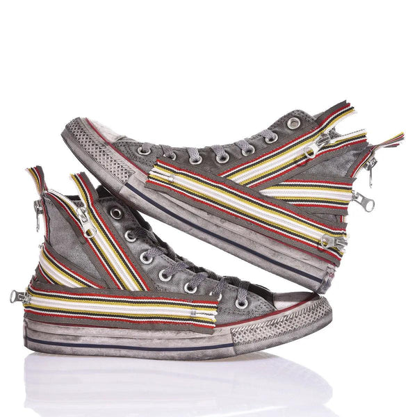 Le Converse Zipper sono le sneakers custom che reinventano il concetto di stile con un twist moderno e audace. Interamente rivestita da zip multicolor, questa sneakers si distingue per l'energia vibrante dei colori in contrasto alla base grigia effetto vintage che dona un tocco di classicità, creando il perfetto equilibrio tra tendenze contemporanee e design iconico.