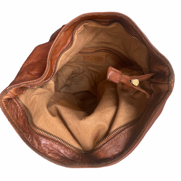 Zaino in vera pelle effetto vintage tinto lavato in capo made in italy