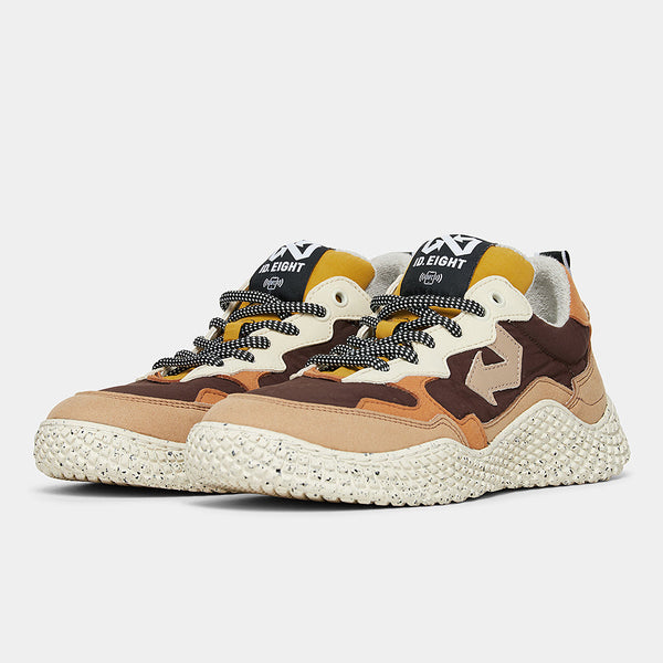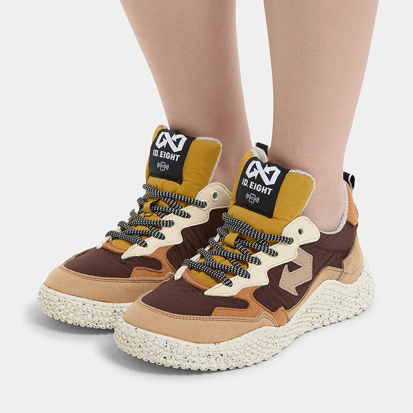 Come una tavoletta di cioccolato fondente con un tocco speziato, HANA COCOA unisce una base cioccolato a dettagli beige e senape per un look caldo e deciso. È realizzata in poliestere riciclato idrorepellente e Uppeal (mela), materiali che rispettano l’ambiente senza rinunciare a performance e stile. Il sottopiede antibatterico e antiodore garantisce comfort e igiene continua.