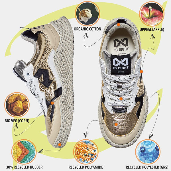 HANA GOLD è la sneaker che unisce il glamour del finish laminato ad un design moderno e grintoso. I dettagli a contrasto in Uppeal la rendendono perfetta un look che non passa inosservato! Con sottopiede antibatterico e antiodore, ogni passo è all’insegna del comfort e della freschezza, senza mai rinunciare allo stile.