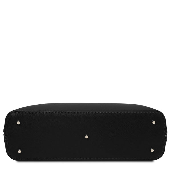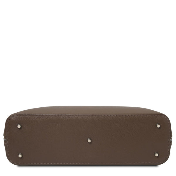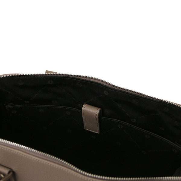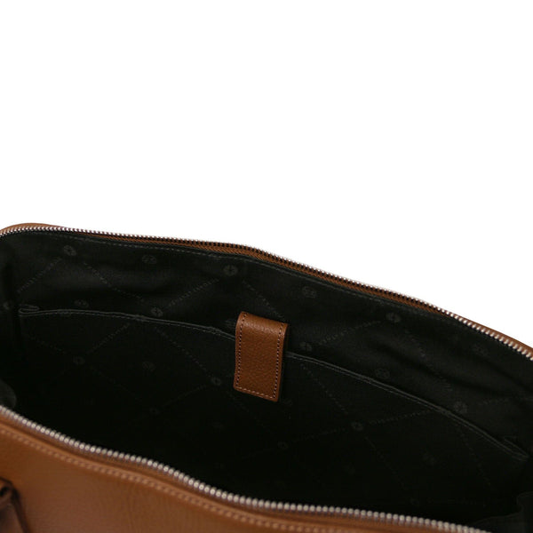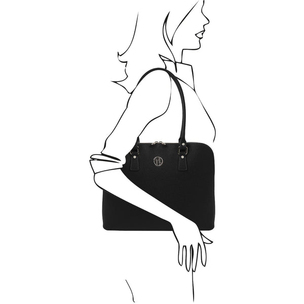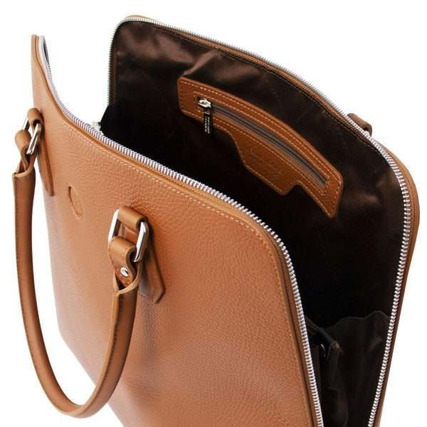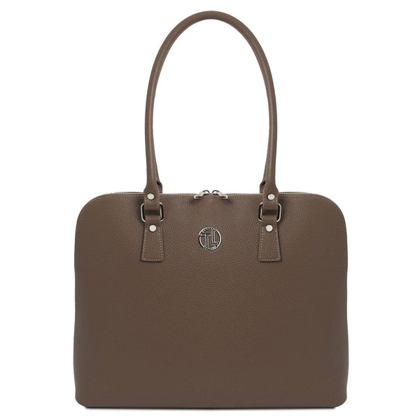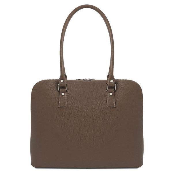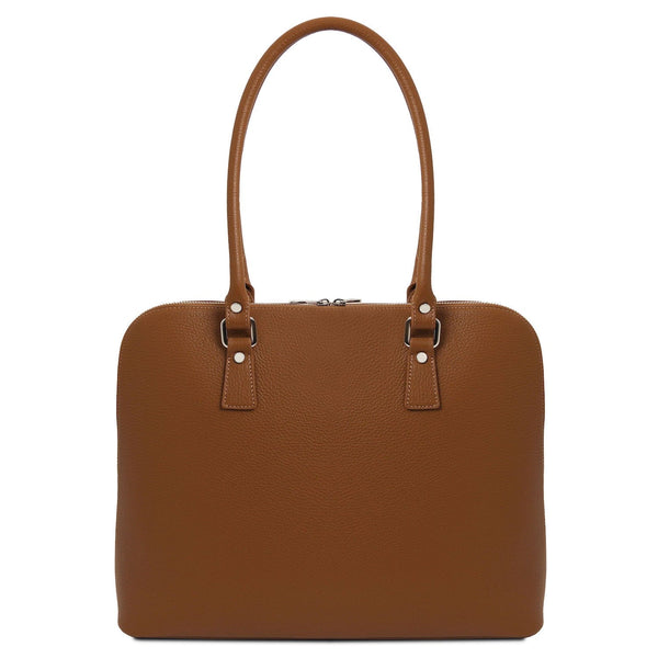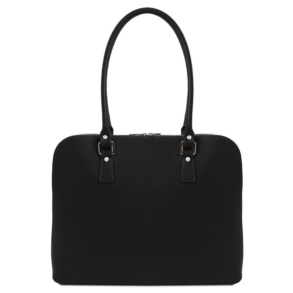 This structured leather tote stands out as a practical yet timeless piece. Crafted from luxurious pebbled leather, it exudes both simplicity and sophistication. Handcrafted in Italy from premium Italian leather, this well-designed handbag features a spacious interior and a handy middle zipped pocket, combining the functionality of a laptop bag with the elegance of a stylish purse.