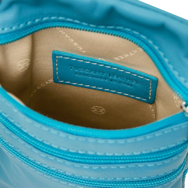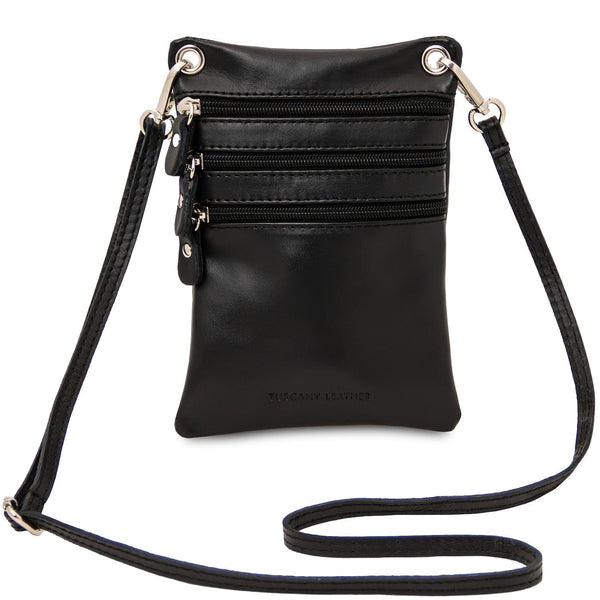Featuring a soft structure, this Italian leather mini cross bag includes a spacious main compartment, a back pocket with closure, and three front zip pockets for optimal organization. The belt loop on the back adds another level of convenience. The detachable and adjustable leather shoulder strap, combined with silver hardware and a zip closure, ensures both comfort and style.