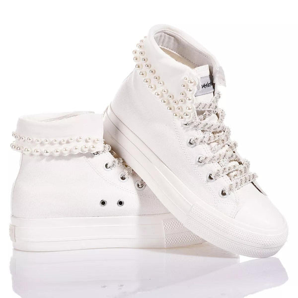 Ami lo stile bon ton chic? Allora Mimanera Airlines Platform Colette è la sneakers perfetta per te! Queste sneakers, ispirate al classico modello Converse, hanno una suola platform completamente bianca che slancia la figura senza compromettere il comfort.