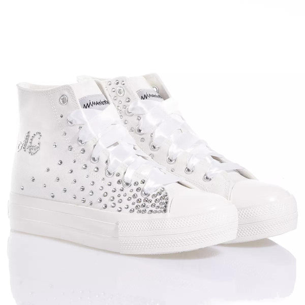 Una cascata di cristalli Swarovski e la personalizzazione con le proprie iniziali in Swarovski rende queste sneakers uniche e speciali.