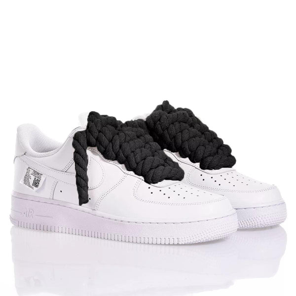 Nike Air Force 1 Boom Laces Black è la sneakers custom must have di questa stagione! L'iconico modello Air Force rivisitato con etichetta esterna sotto lo swoosh e maxi lacci in corda neri per un gioco di volumi mai visto prima!