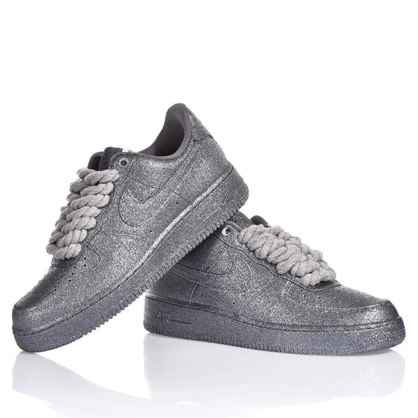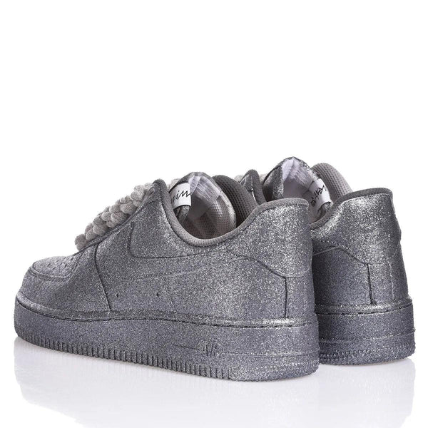 Nike Air Force 1 Full Grey è la sneakers che trasforma ogni passo in una scintillante dichiarazione di stile! Interamente ricoperta di glitter color antracite, questa scarpa cattura immediatamente l'attenzione, regalando un effetto luminoso e sofisticato. Il design minimalista in contrasto al maxi laccio in corda grigio fa di questa Nike Air Force 1 un vero e proprio pezzo di lusso, perfetto per chi vuole unire comfort e glamour in un unico look.