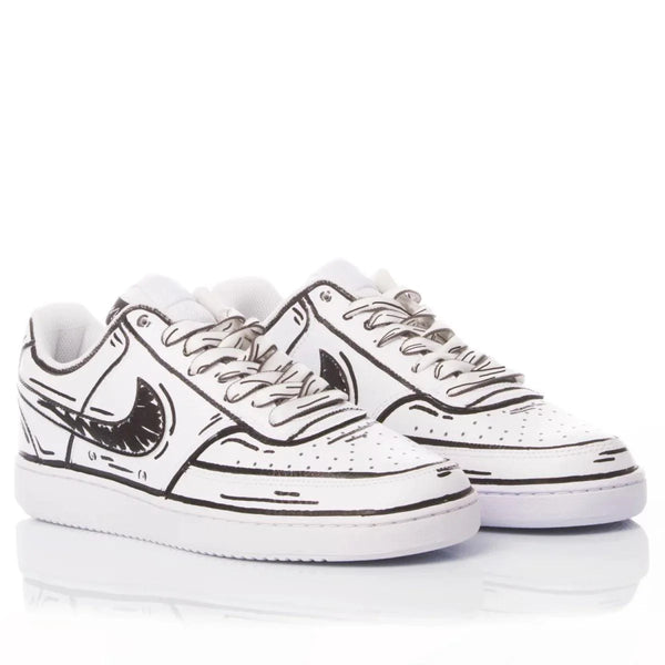 Nike Comics White, una vera opera d'arte in cui la scarpa è come una tela bianca, interamente dipinta a mano, come fosse un vero e proprio Kandinsky, direttamente ai tuoi piedi. Dai toni classici, la particolarità sta tutta nella tecnica di pittura che necessita tempo e cura ed una mano esperta. Ogni pezzo è unico e perfetto in ogni sua diversità. Non potranno fare a meno di guardarti i piedi. Nike Comics White ti verrà fornita con lacci profilati di grigio oltre ai suoi originali bianchi.