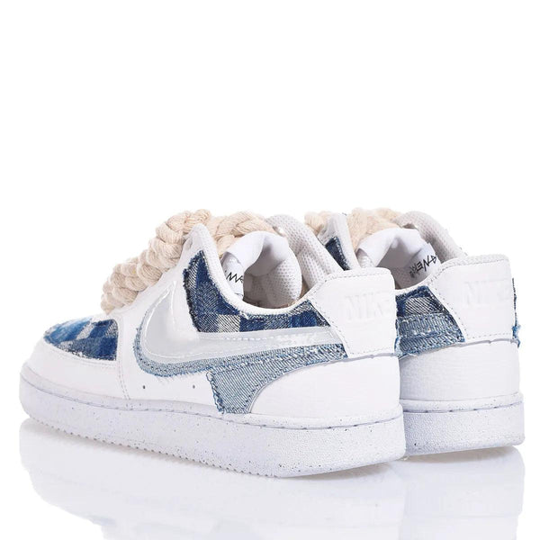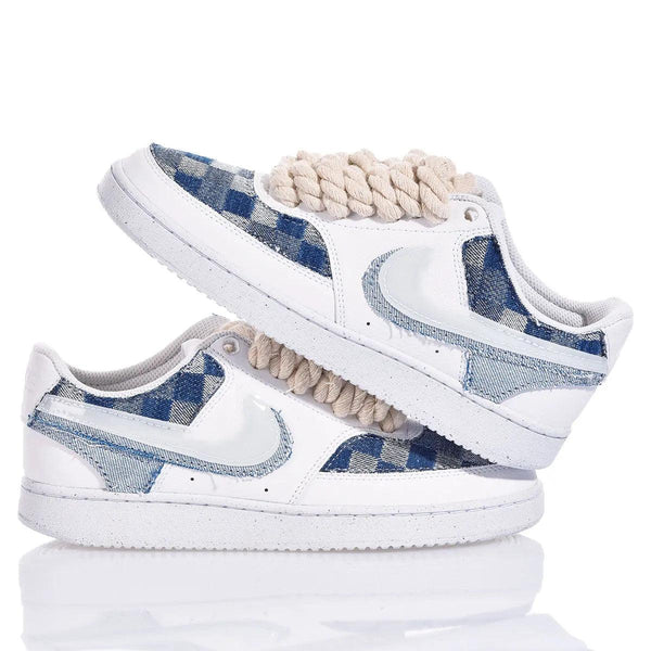 Nike Denim Check è la sneakers custom da uomo pensata per chi cerca un tocco di stile unico! Il denim a scacchi su lato e punta e il retro in denim chiaro creano un mix di eleganza casual, mentre il doppio swoosh in denim e PVC bianco opaco dona un effetto moderno e raffinato. I maxi lacci in corda panna e gli occhielli gancio trekking non sono solo funzionali, ma aggiungono anche un elemento di tendenza, per un look sporty-chic che si distingue. Ideale per chi ama il comfort senza rinunciare alle tendenze!