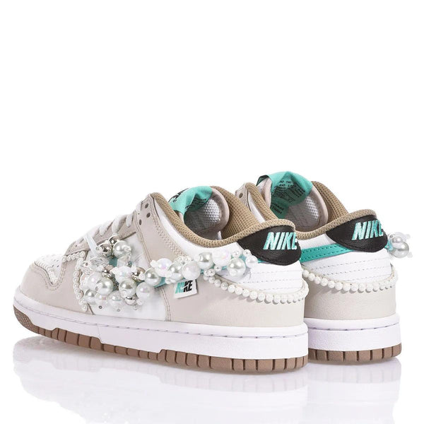La Nike Dunk Mint Ice è la sneakers personalizzata da donna dal carattere vivace e raffinato! Le eleganti perle impreziosiscono le linee di questo modello iconico, creando un contrasto delicato ma deciso. Il vero dettaglio di classe è lo swoosh gioiello, arricchito da perle e ciondoli, che conferisce un tocco di luce unico. Un vero must per chi non vuole passare inosservata!