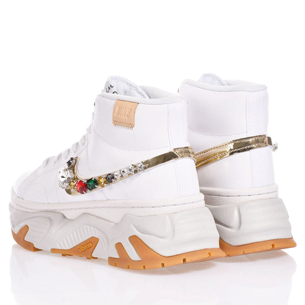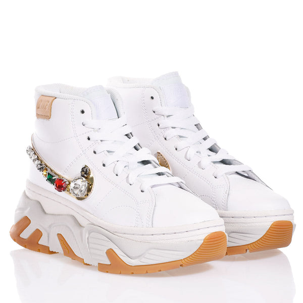 Lo Swoosh è un vero gioiello, impreziosito da pietre multicolor incastonate con cura, che trasformano il dettaglio iconico in un elemento brillante e ricercato.