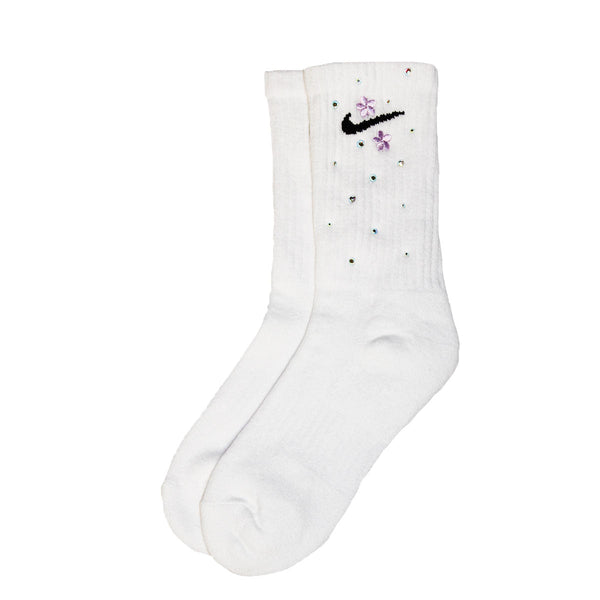 Lasciati conquistare da un tocco floreale e stiloso con i Nike Socks Swarovski Flower. Realizzati su base bianca, questi calzini uniscono comfort e glamour grazie a un design esclusivo: fiori ricamati e una cascata di Swarovski scintillanti che donano luce e carattere a ogni passo.