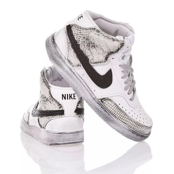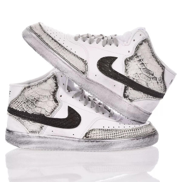 Nike The Fallen è la sneaker custom da uomo e donna, arricchita dall'eco pelle pitonata bianca nella parte posteriore e frontale, mentre sullo ''swoosh'' è nera. Tutta la silhouette è resa vintage grazie a delle sporcature.