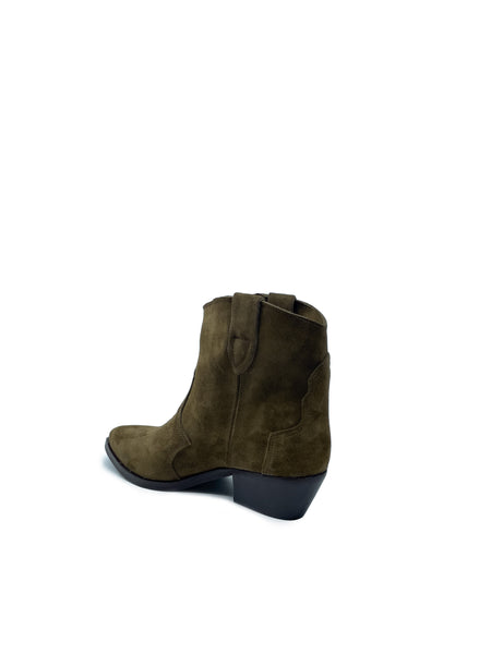 ROMA- Stivaletto col tacco donna alla caviglia in Pelle Scamosciata Tabacco