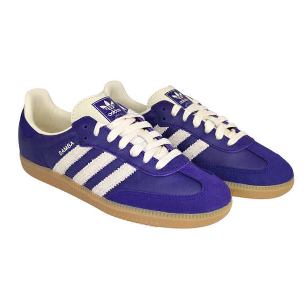 Le Adidas Samba OG in Copper Purple/Cream White/Gum3, presentano una tomaia in pelle con dettagli in camoscio e la classica suola in gomma. Questa scarpa combina comfort e stile retrò, adatta tanto per il tempo libero quanto per un look casual chic. La tomaia morbidissima si abbina alla suola che garantisce aderenza e durata, mantenendo le caratteristiche iconiche delle Samba OG