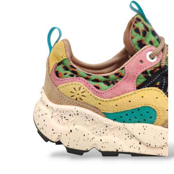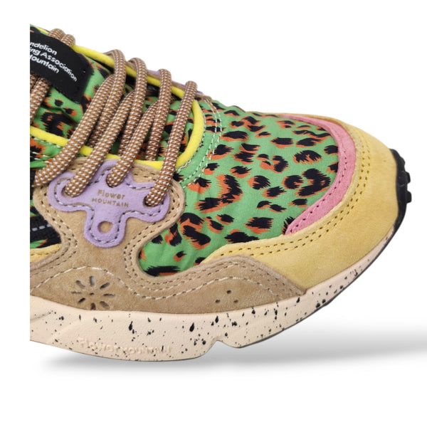 Le Flower Mountain Yamano 3 Print sono sneakers che uniscono il design giapponese alla qualità artigianale italiana. Ispirate alla natura e al trekking, queste scarpe offrono una fusione di tessuti tecnici e pelle, con dettagli come lacci da trekking e iconici occhielli in pelle. La fodera in pelle e il sottopiede in sughero naturale, trattato con AGION per prevenire muffe e batteri, garantiscono igiene e comfort. La suola in gomma leggera con particolare grip è ideale per le attività outdoor, rendendole perfette per chi cerca stile e funzionalità
