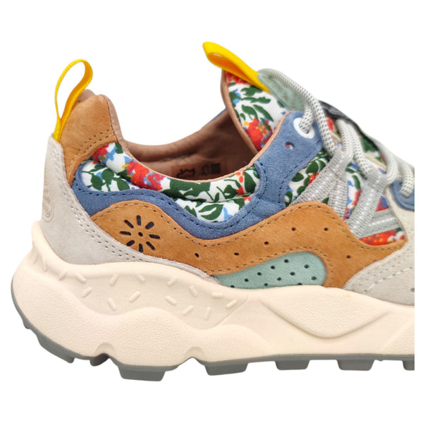 Le Flower Mountain Yamano 3 Print sono sneakers che uniscono il design giapponese alla qualità artigianale italiana. Ispirate alla natura e al trekking, queste scarpe offrono una fusione di tessuti tecnici e pelle, con dettagli come lacci da trekking e iconici occhielli in pelle. La fodera in pelle e il sottopiede in sughero naturale, trattato con AGION per prevenire muffe e batteri, garantiscono igiene e comfort. La suola in gomma leggera con particolare grip è ideale per le attività outdoor, rendendole perfette per chi cerca stile e funzionalità