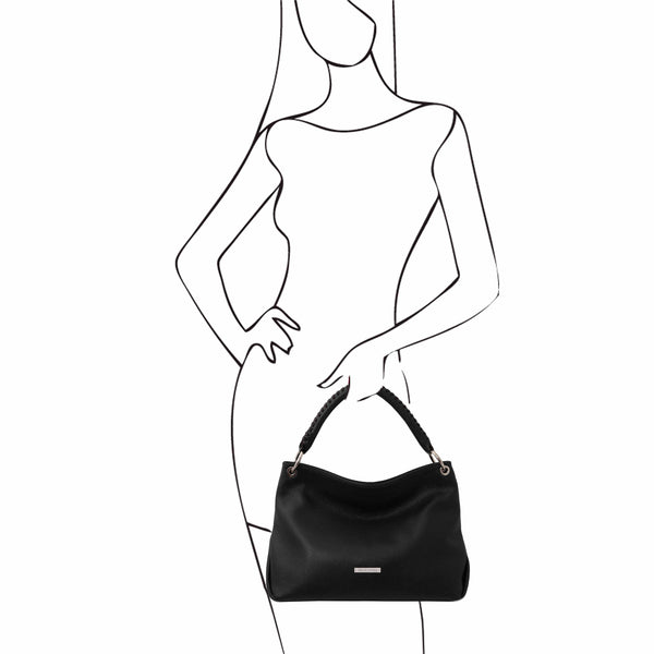 Embrace elegance with our luxurious soft Italian leather handbag, a true testament to Italy's timeless craftsmanship. This exquisite piece is meticulously handmade from supple, pebbled leather, ensuring a refined look that complements any outfit.