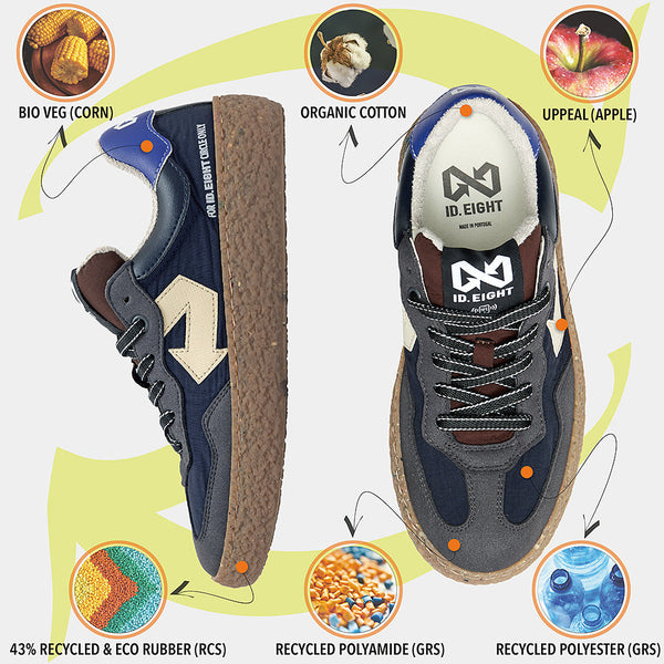 Lasciati avvolgere dall’intensità di URIDURI MIDNIGHT SKY, la sneaker che racconta l’eleganza profonda del blu notte. La tomaia monocromatica è spezzata con equilibrio dalla linguetta e dalla suola color marrone, mentre la freccia laterale bianca aggiunge un dettaglio deciso e inconfondibile. Un mix sofisticato e versatile, perfetto per affrontare la giornata con stile. Come sempre, la sostenibilità è al primo posto: materiali innovativi come BioVeg (a base di mais), Uppeal (da scarti di mela) e tessuti riciclati idrorepellenti si uniscono al sottopiede antibatterico e antiodore per offrirti comfort e rispetto per l’ambiente, passo dopo passo.